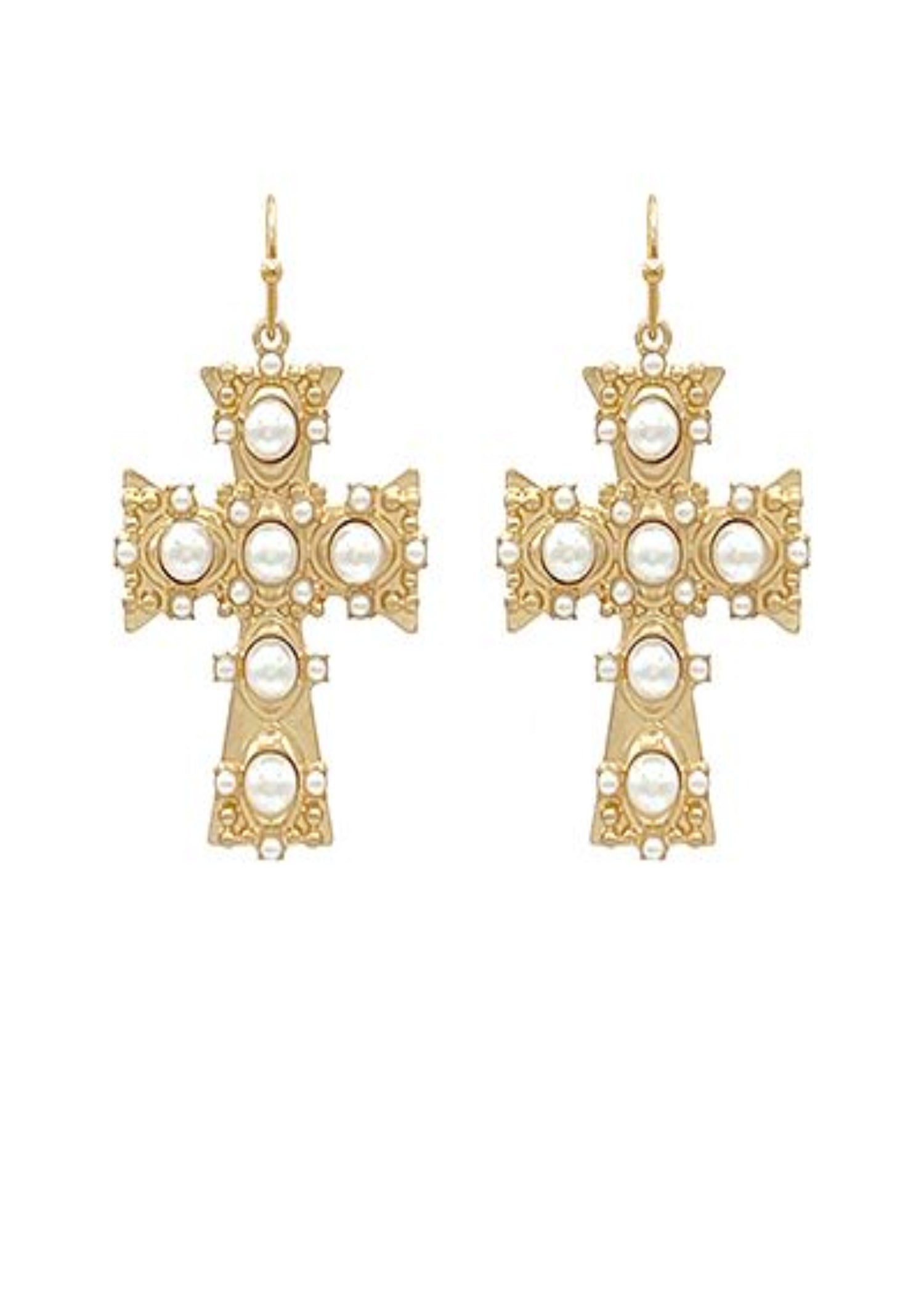 ANTIQUE CROSS MULTI PEARL DROP EARRINGS