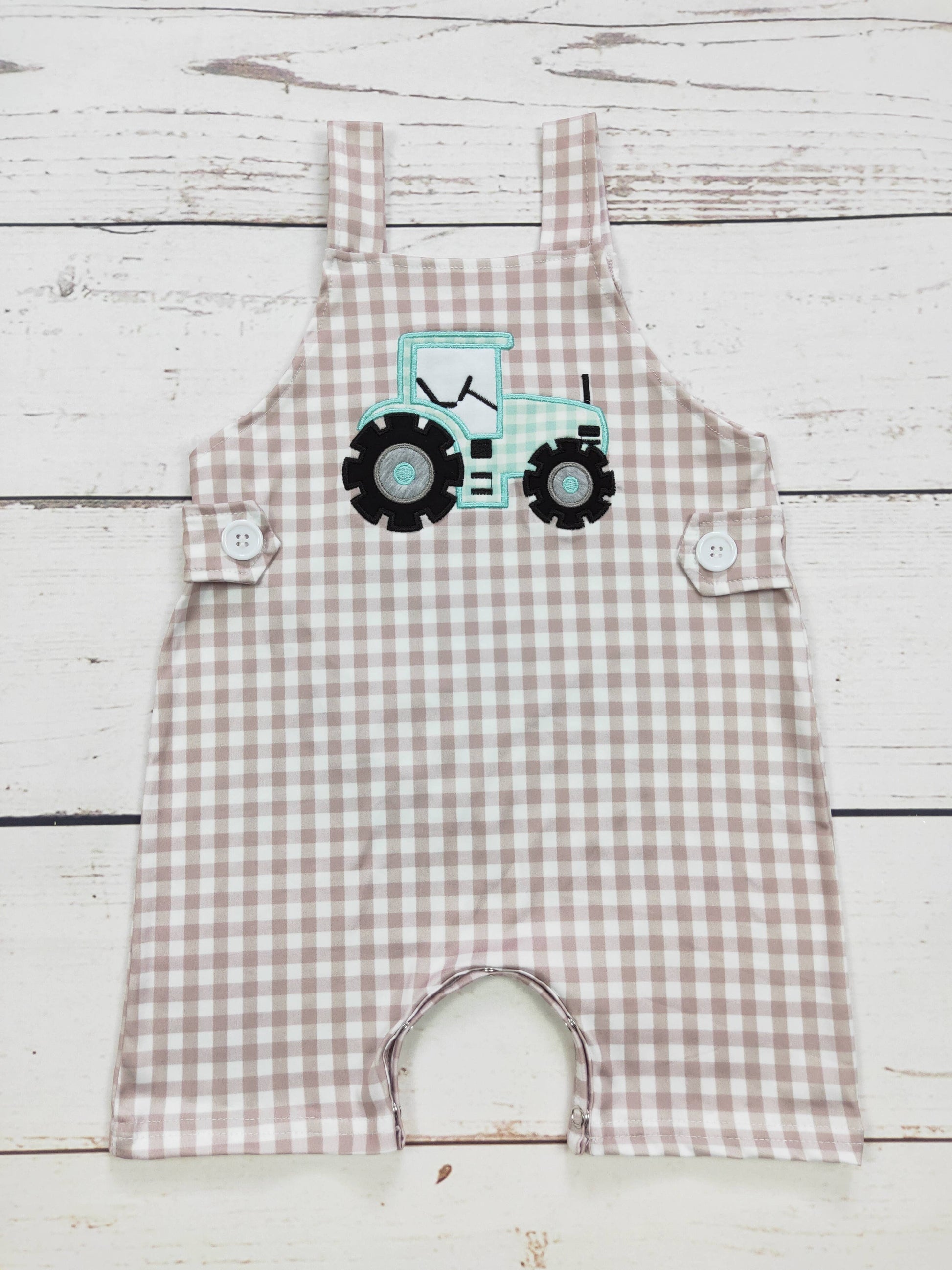 Baby Boy Tractor Appliqué Checkered Romper