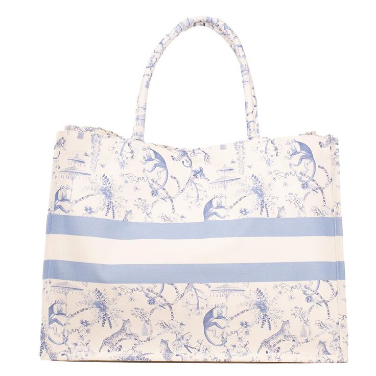The Borneo Classic Tote in White/Blue is a stylish and versatile bag measuring 19x14x7.5 inches. With its classic design and spacious interior, it is the perfect accessory for any occasion.