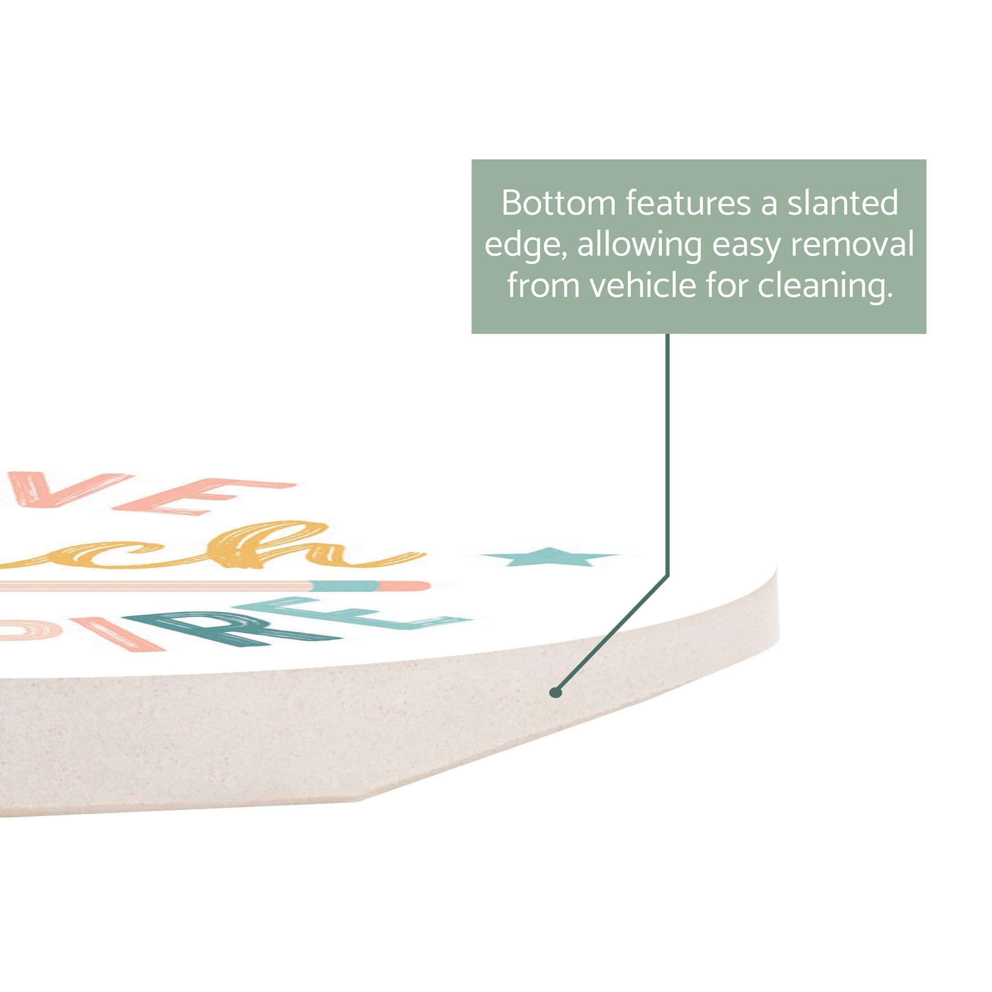 If you don’t know about car coasters yet…they’re a big deal. Like hair in the 80’s. You might ask yourself, “where have these been all my life?” Car coasters fit snuggly into your vehicle’s cup holders. Strategic divot on one side so they can be easily popped out. Pretty & practical – a pop of design and they keep your cup holders clean. 2.65” diameter. Absorbent ceramic coaster. Designed, printed and packaged in the USA