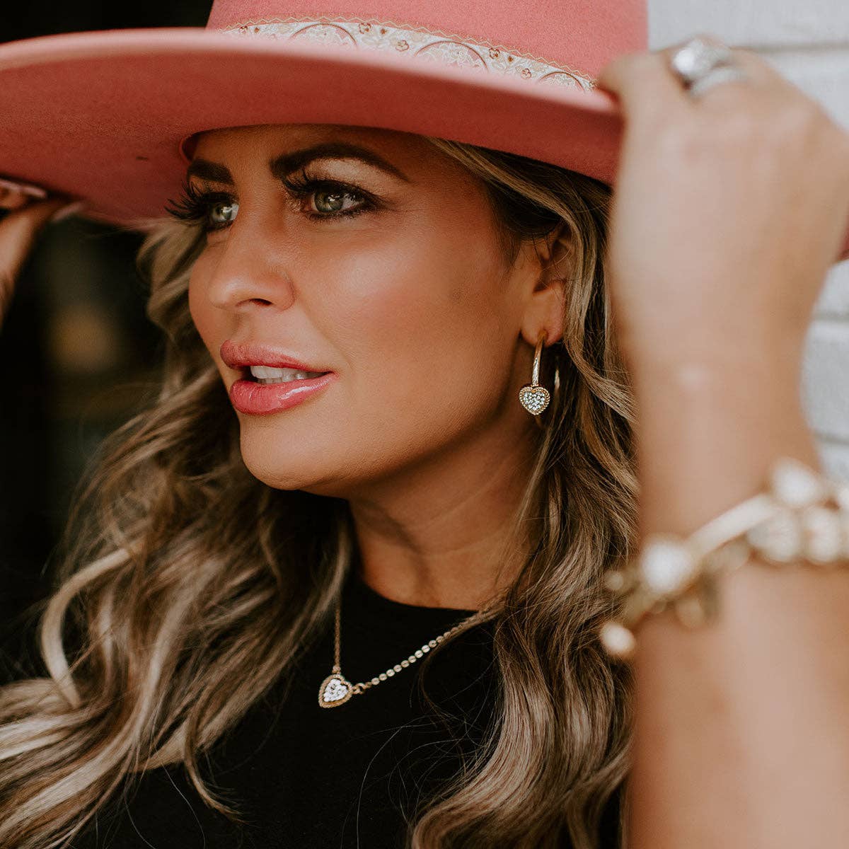 Corrine Pavé Heart Hoop Earrings in Worn Gold