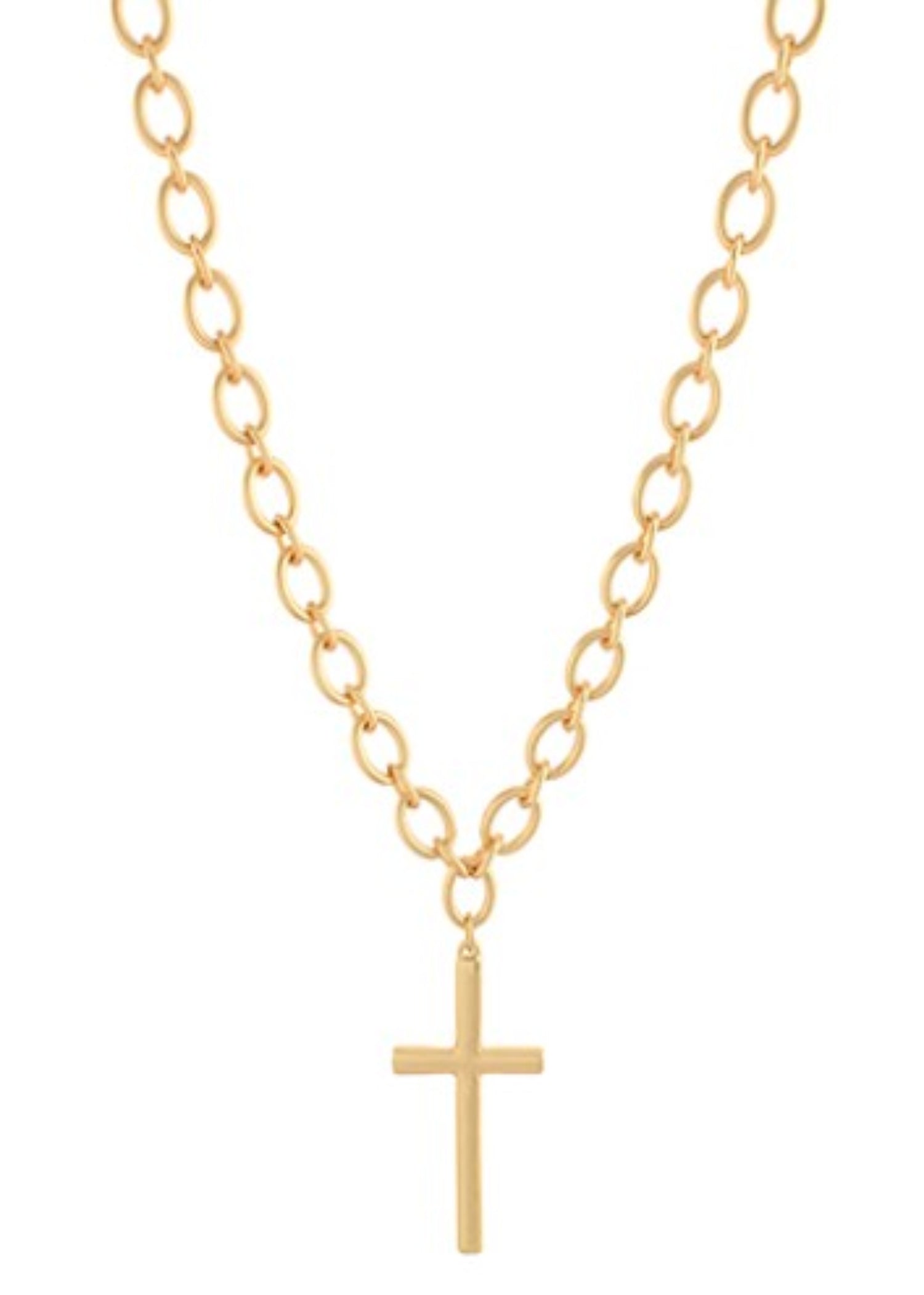 Elevate your style with the Cross & Oval Chain Necklace, a striking blend of classic symbolism and modern design. The oval links provide a sleek, contemporary look, while the cross pendant adds a meaningful touch. Perfect for layering or wearing alone, this necklace complements any outfit with subtle confidence and timeless elegance.