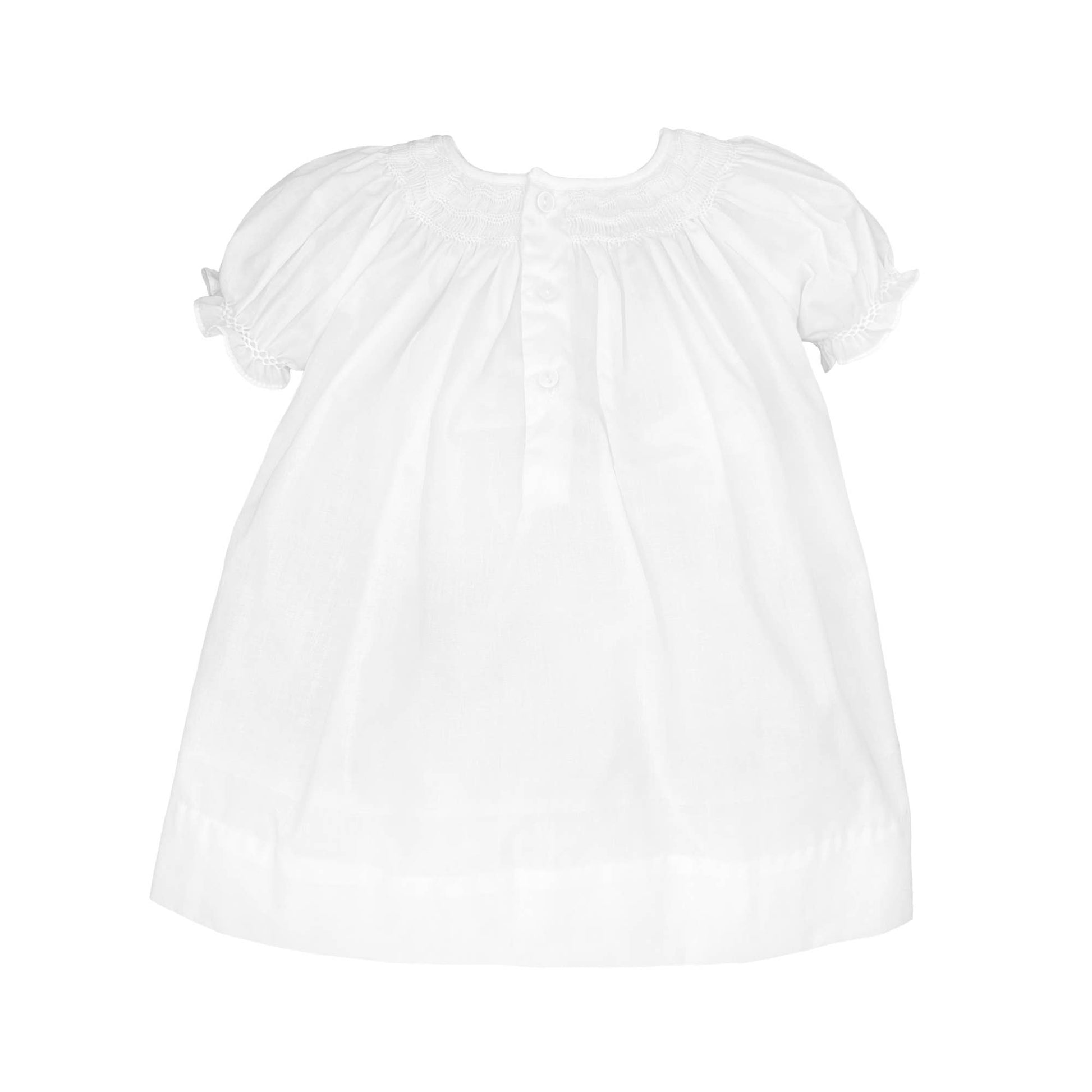 Featuring heirloom-quality handcrafted details like hand embroidered flowers and wave smocking, this pieces is sure to become a treasured keepsake.