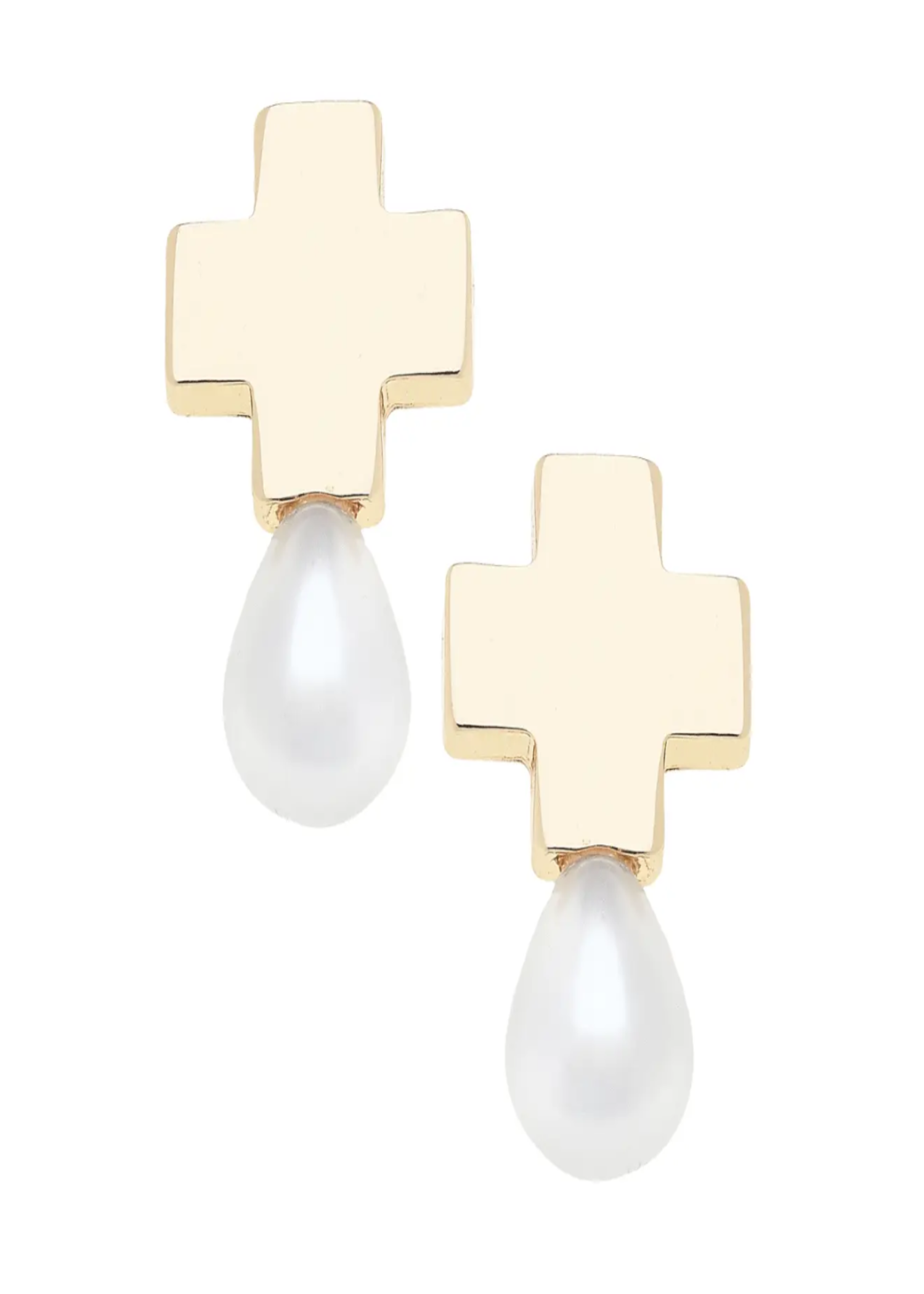 The Edith Square Cross Pearl Drop Earrings bring an element of grace and sophistication. Featuring an elegant square cross design with a soft ivory pearl drop, these earrings are perfect for adding a refined touch to both casual and formal looks. A timeless addition to your jewelry collection.