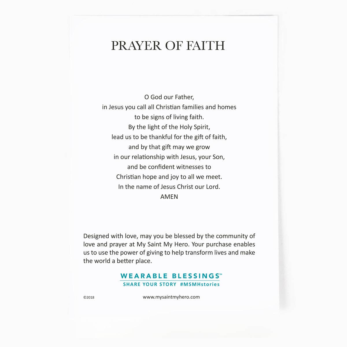 Faith Petite Cross Necklace comes on an inspirational card with a Prayer of Faith.