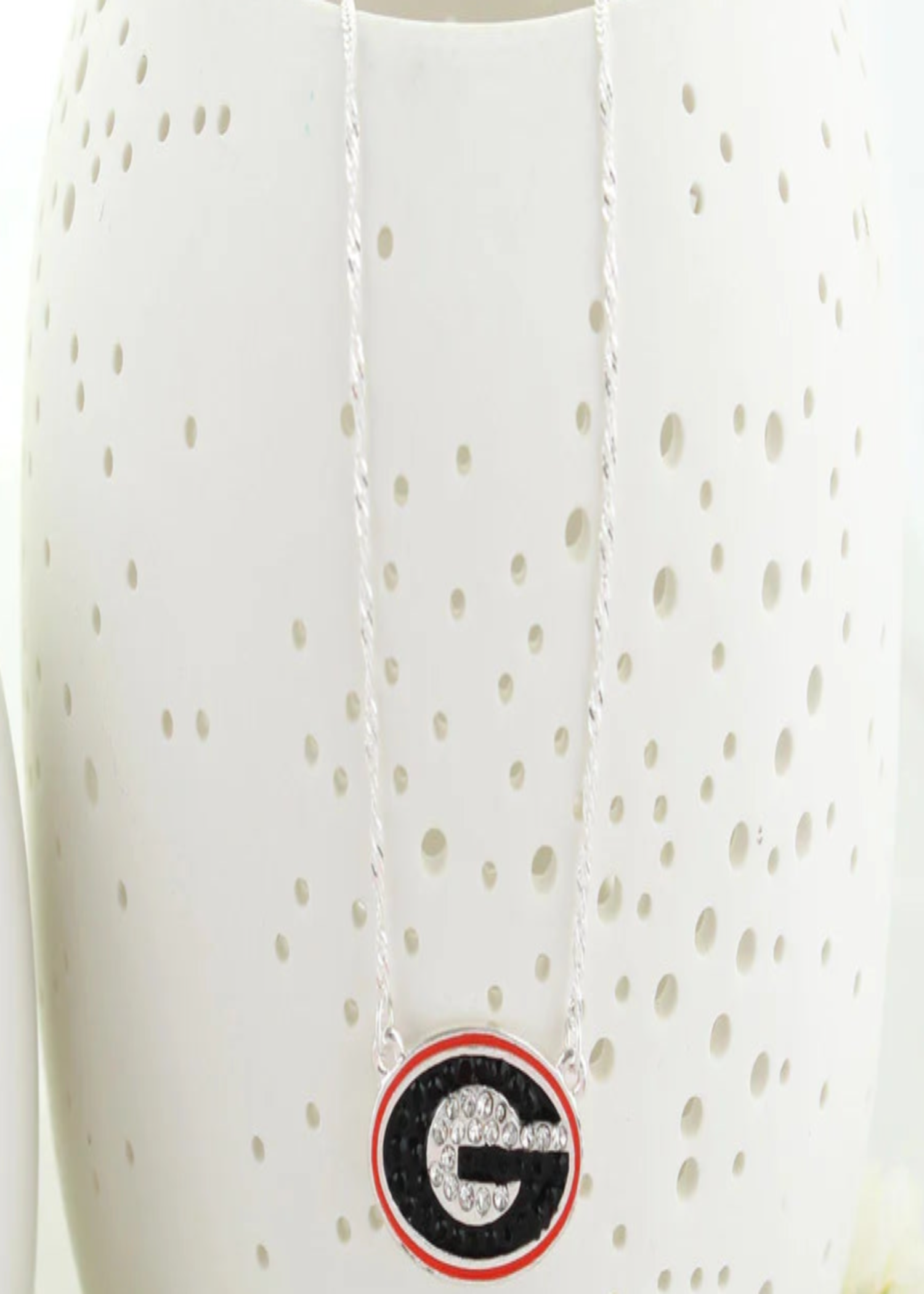 Show your pride for the University of Georgia with this stunning crystal logo necklace! The 16" silver tone chain is adorned with black and clear rhinestones, red enamel, and a claw clasp with a 3" extender. Perfect for any Bulldog fan, this necklace is an officially licensed Collegiate by Seasons product. Go Dawgs!