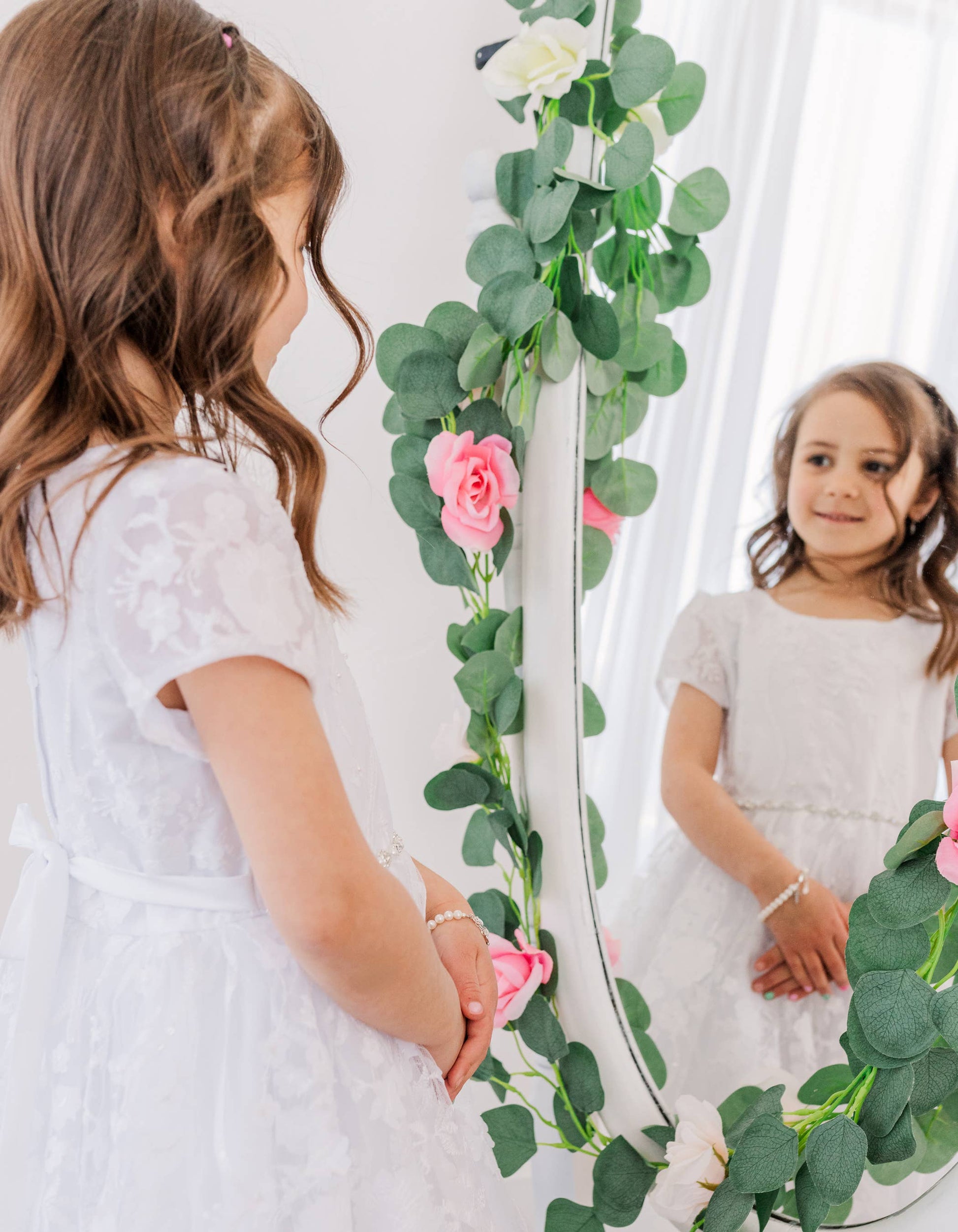 Beautiful keepsake sterling silver bracelet with high-end Austrian simulated pearls and an intricate silver cross - perfect for baptisms, christenings and communion! Each bracelet has an extension chain, as the child grows just move to the next link for a perfect fit. This bracelet is available in three sizes and is great for infants, babies, toddlers, and older girls. This cross bracelet comes in a beautiful gift box.