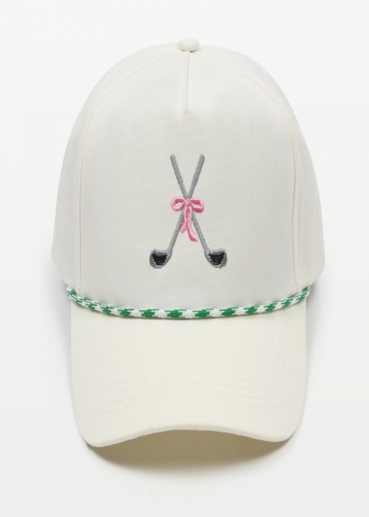 Golf Club With Bow Embroidered Baseball Cap and With Rope Detail