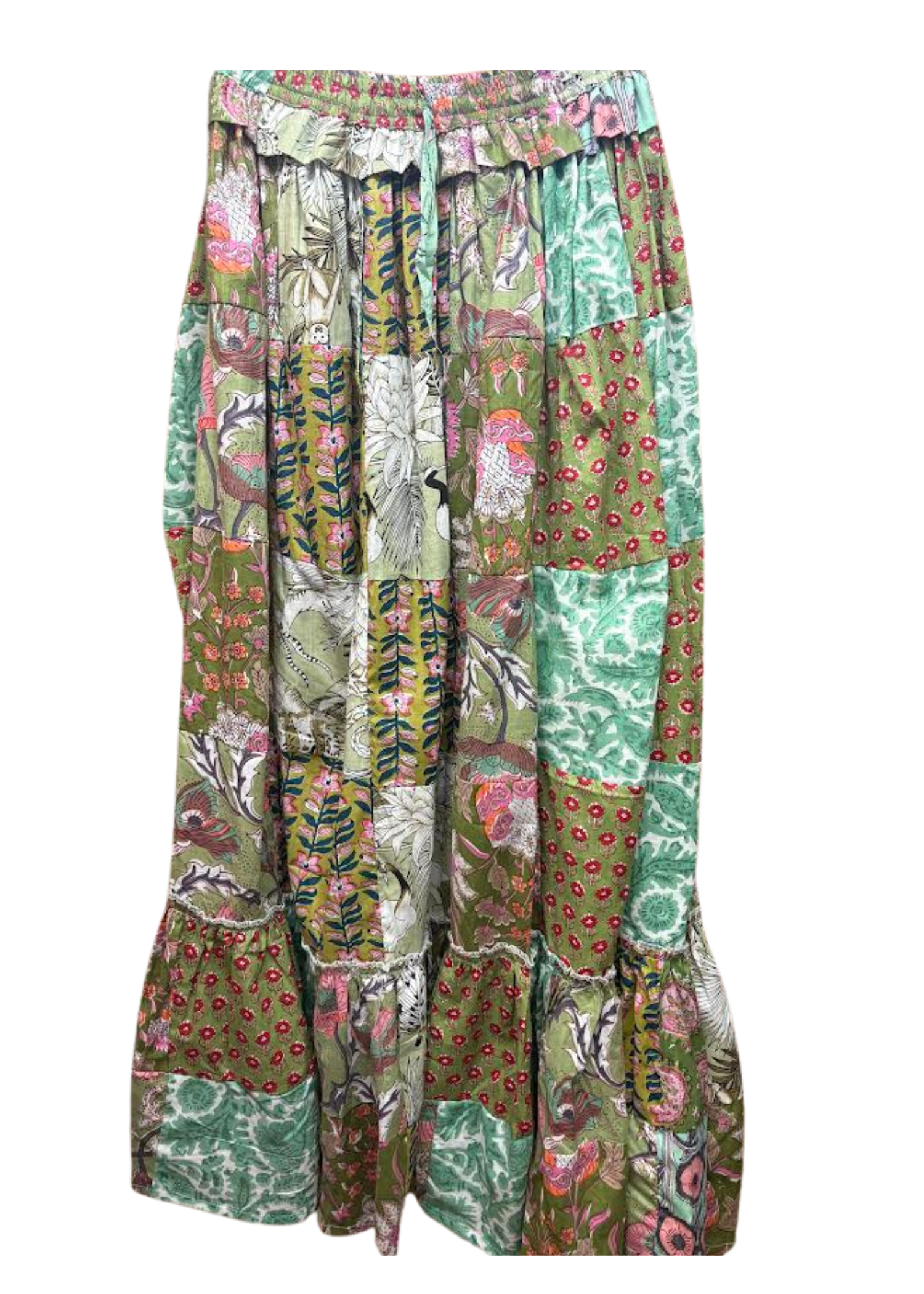 Brighten your wardrobe with the GREEN Patchwork Skirt, featuring a vibrant mix of green tones that create a unique, eye-catching design. Crafted to offer comfortable wear and effortless style, this skirt pairs perfectly with your favorite tops for a fresh, confident look. Whether for casual outings or lively gatherings, it adds a bold pop of color that draws compliments everywhere you go. Elevate your style with this standout piece today.