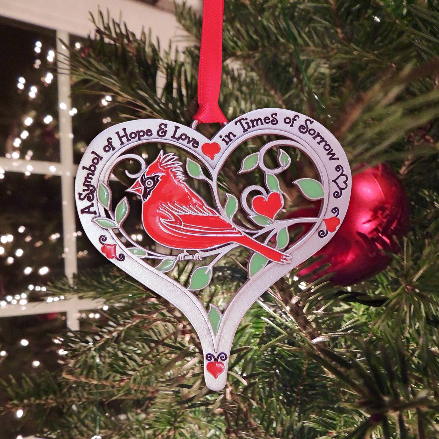 Cardinal Heart Ornament expressing hope & love in times of loss.