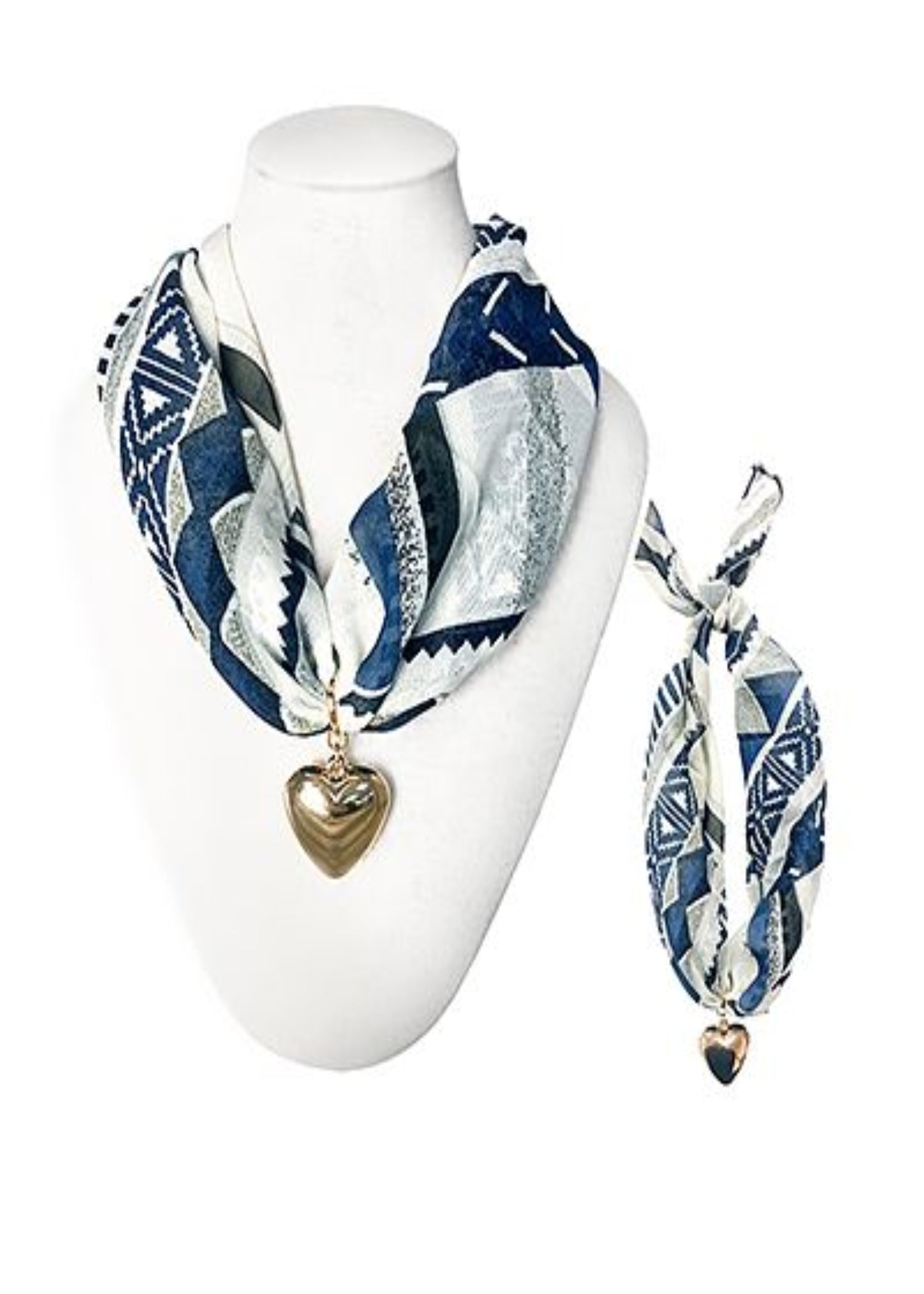HEART & SCARF GEOMETRIC PATTERN NECKLACE-DARK BLUE/GOLD