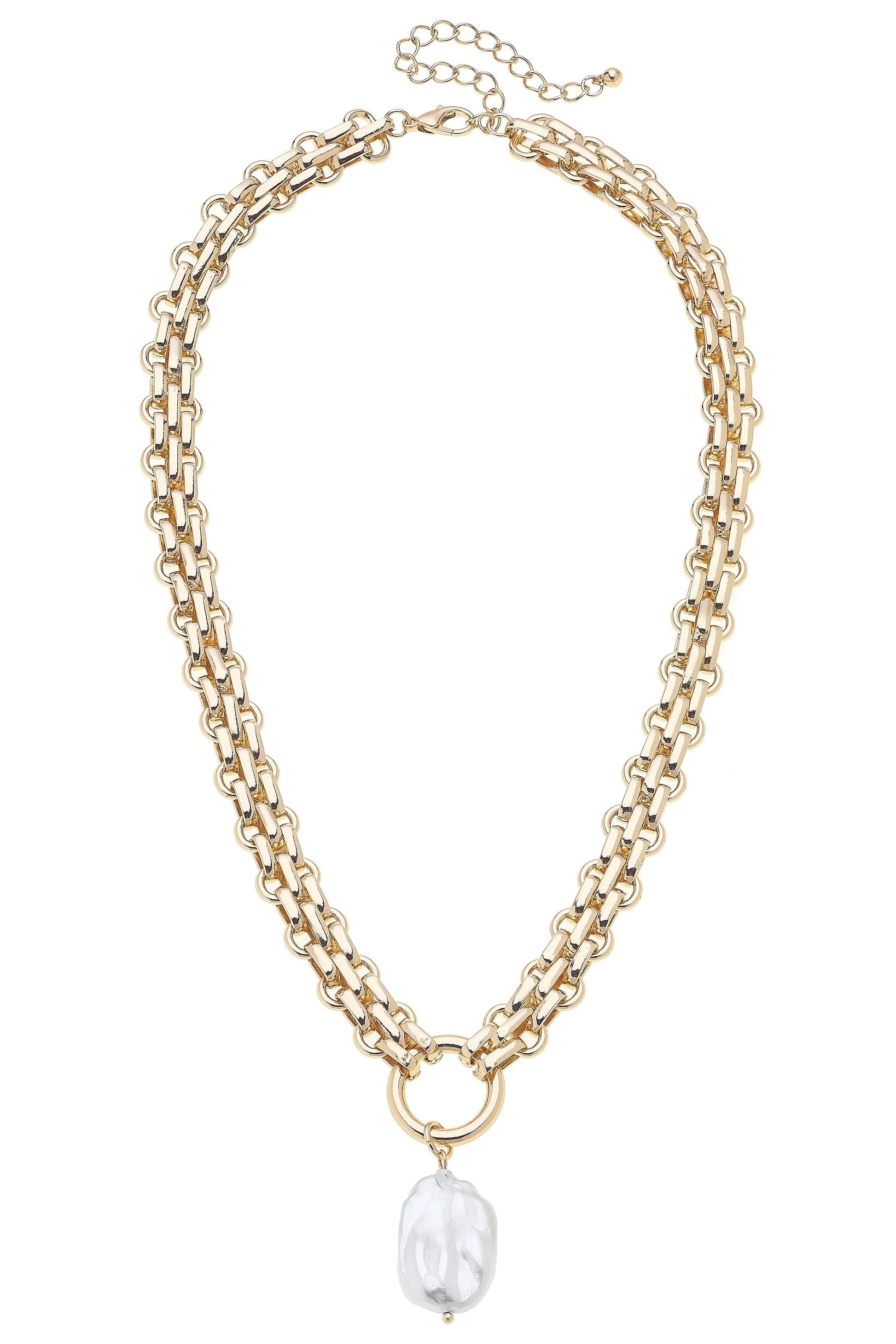 LUCILLE CHUNKY LINK PEARL NECKLACE - SHINY GOLD