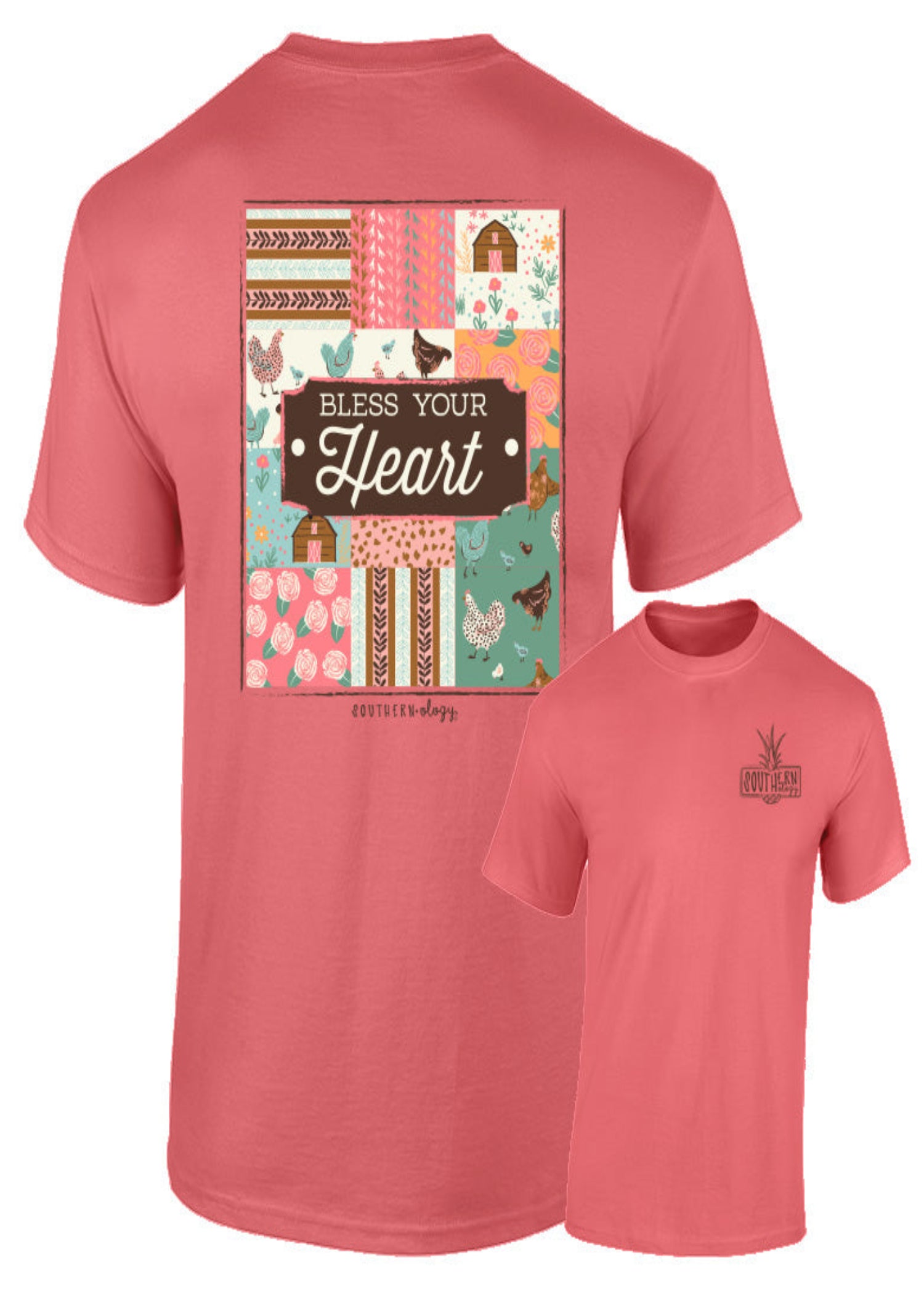 Embrace southern charm with the Patchwork Bless Your Heart T-Shirt. Featuring a stylish patchwork design, this tee combines comfort and personality, making it perfect for casual days or layered looks. Its soft fabric ensures all-day wearability while expressing a heartfelt, playful message. Add a unique touch to your wardrobe with this standout piece that’s as warm and inviting as the phrase itself.