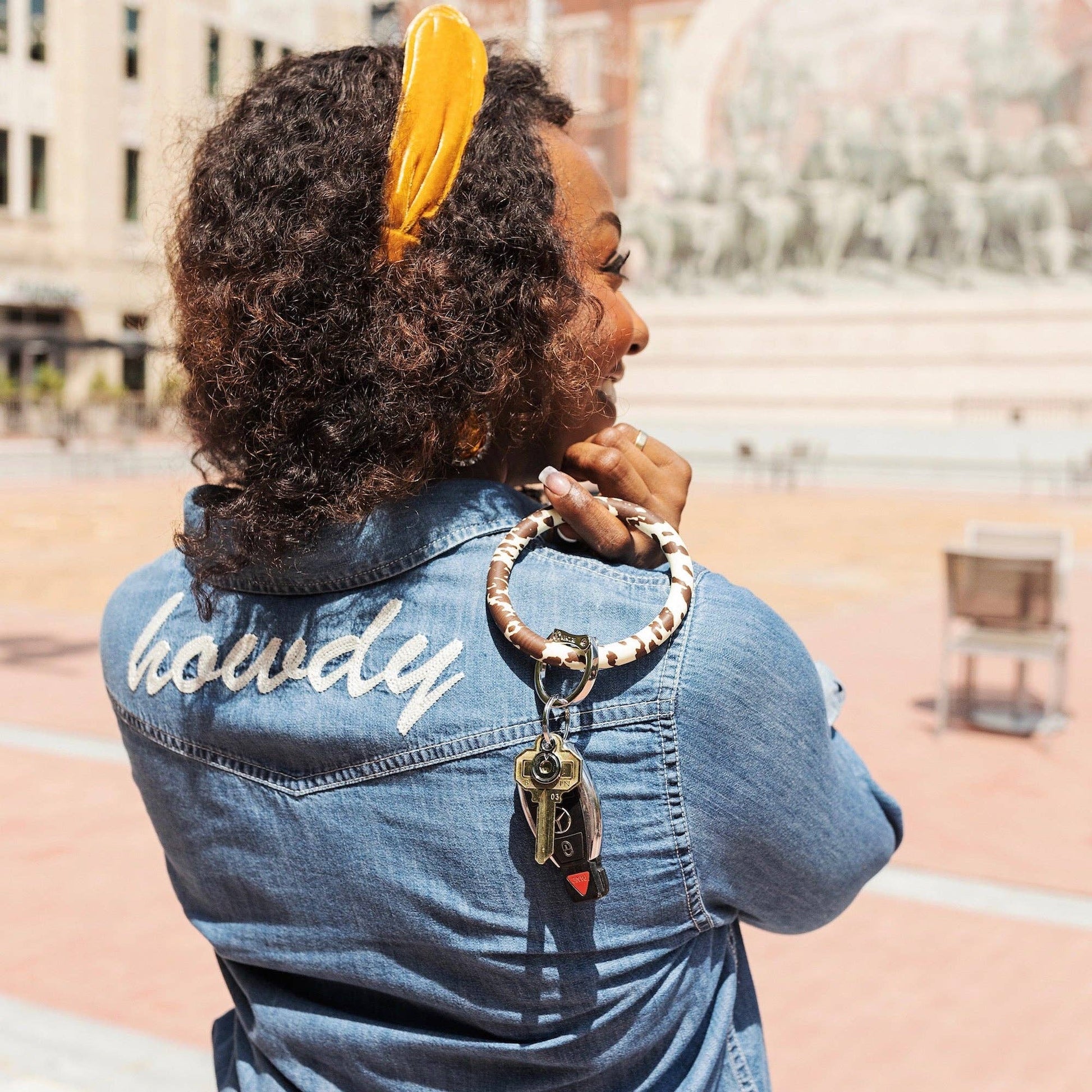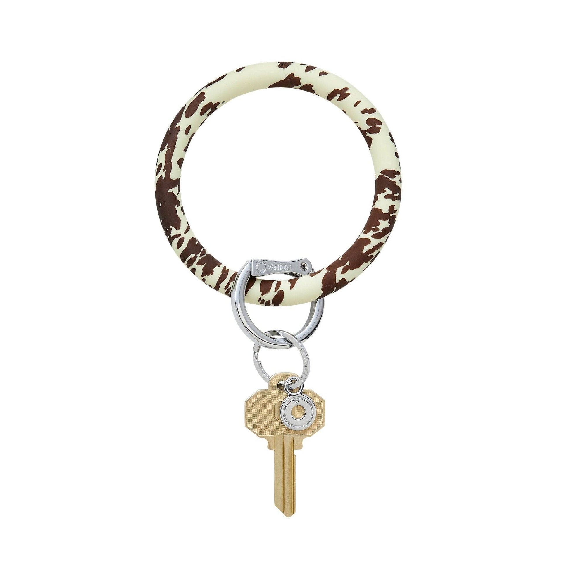 Take a walk on the wild side with Cow! The Original Big O® Key Ring is a one-size-fits-all bracelet key ring that can be worn on your forearm or above your elbow for hands-free simplicity. The patented, signature locking clasp clicks open and closed so you can keep your keys, phone and wallet in one central, secure location.