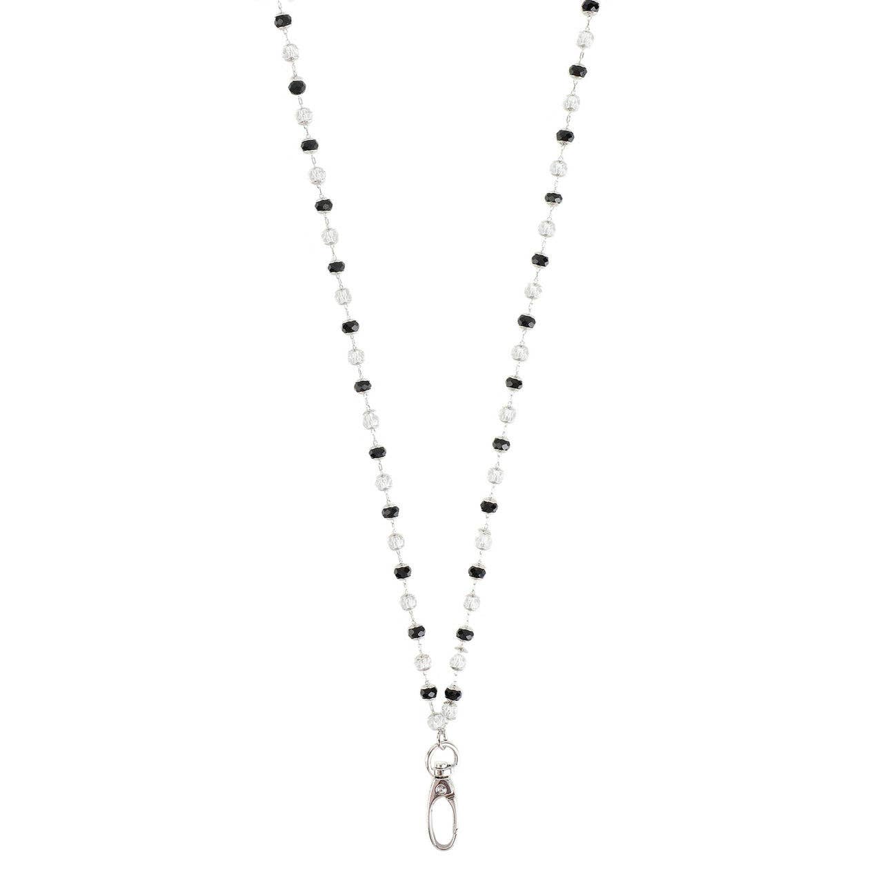 "Go for the classic look with our Stacy beaded ID lanyard! Made up of black and clear beads with silver wire accents, this fashion lanyard is a clean style you can wear with any outfit.