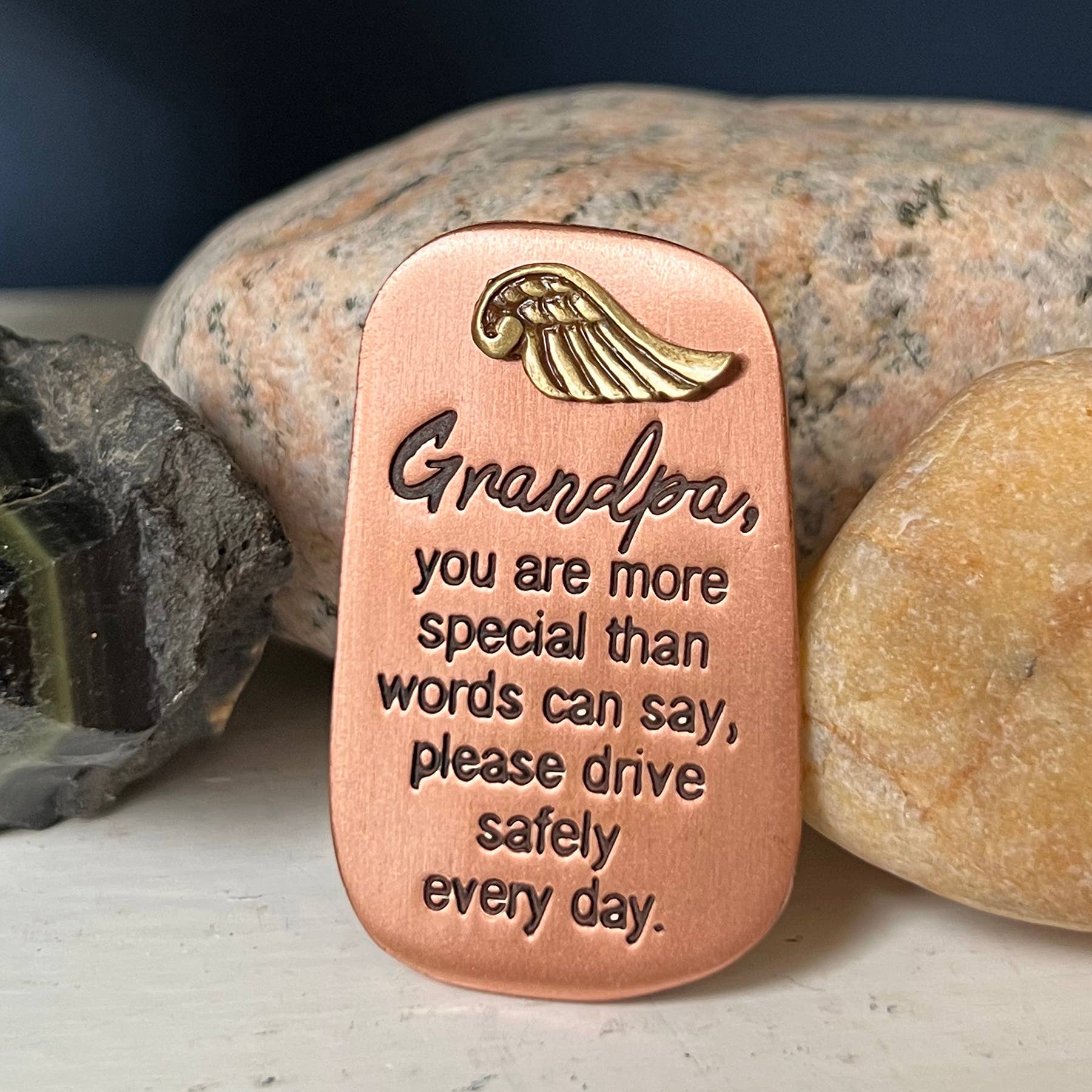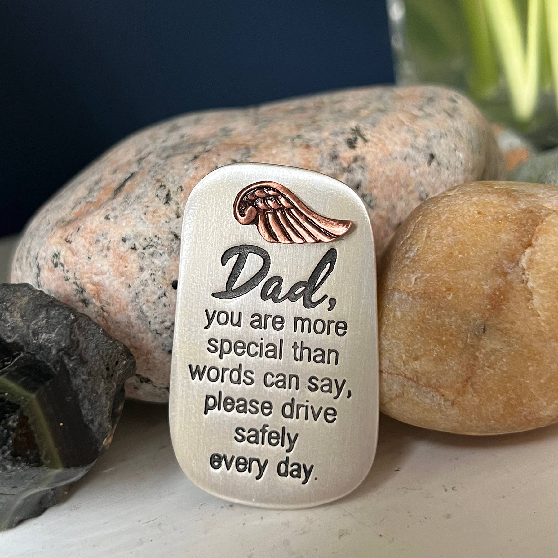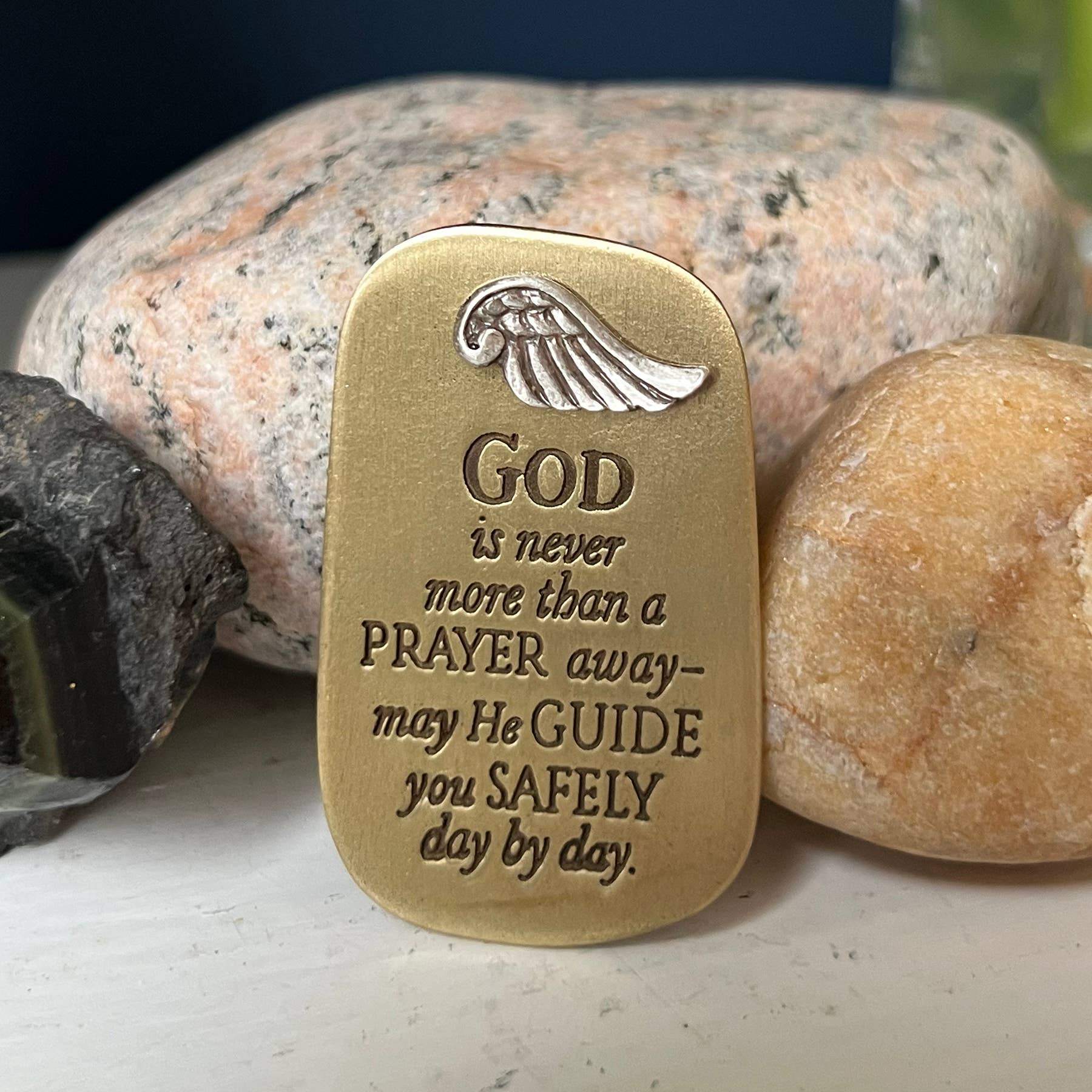Visor clips for him featuring inspiring messages of faith. Metal visor clips with silver, gold, or copper finishes. 1 ¼”W x 2”H clips, carded.